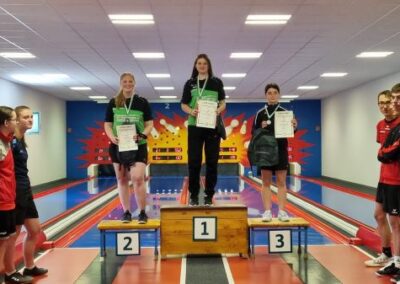 Am vergangenen Wochenende fanden auch die diesjährigen Landeseinzelmeisterschaften der Männer, Frauen und U23 statt. Nicole Drimel bei den Frauen spielte in der Qualifikation 540 Holz, welche leider minimal nicht zum Weiterkommen reichen sollten. Georg Paschke bei den Männern 573 Holz (Platz 8), Thea – Selina Hornig U23 weiblich 546 Holz (Platz 5) und Jonas Kubitz 561 Holz U23 männlich 561 Holz (Platz 4) schafften die Qualifikation und den Einzug ins Halbfinale am Sonntag. Thea- Selina lag nach zwei Bahnen mit 2 zu 0 in Führung, ihre Gegnerin Marie gab im Anschluss aufgrund einer Verletzung auf, auch an dieser Stelle nochmal gute Besserung! Thea- Selina erspielte noch 518 Holz und zog ins Finale ein. Jonas hatte dagegen deutlich mehr zu kämpfen, gegen seinen Gegner von Medizin Bad Gottleuba setzte er sich am Ende mit 544 zu 532 Holz und 2 zu 2 Sattpunkten durch. Finale! Georg hatte bei den Männern wohl die schwierigste Aufgabe. Gegen den Markranstädter Bundesliga Kegler Veit Tänzer konnte er dennoch über sich hinauswachsen und mit 604 zu 581 Holz und 3 zu 1 Sattpunkten gewinnen und ebenfalls ins Finale einziehen. Bei Thea- Selina lief das Finale nicht optimal, dennoch konnten auch die Gegnerinnen nicht wirklich davonziehen und es ergab sich ein spannender Kampf. Am Ende belegte Thea- Selina mit 500 Holz und 10 Punkten den 2. Platz, was damit die Vizemeisterschaft bedeutet. Da Laura Scholz durch ihre Platzierung aus dem Vorjahr und auch der Teilnahme am diesjährigen Finale vorqualifiziert war, reichte es für Thea- Selina leider denkbar knapp nicht zur Teilnahme an der Deutschen Meisterschaft, dennoch großartige und überragende Leistung über die gesamte Saison! Jonas fand leider im Finale gar nicht in sein Spiel, mit 519 Holz und 5 Satzpunkten belegte er den undankbaren 4. Platz. Georg Paschke konnte im Finale erneut überzeugen, mit viel Ruhe und 9nern zum richtigen Zeitpunkt knackte er seine Kontrahenten aus der 2. Bundesliga sowie 1.Verbandsliga (589 Holz 13 Punkte). Wir wünschen Georg viel Erfolg bei der Deutschen Meisterschaft in München am 08/09.06.2024.