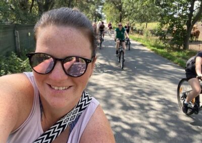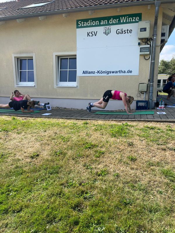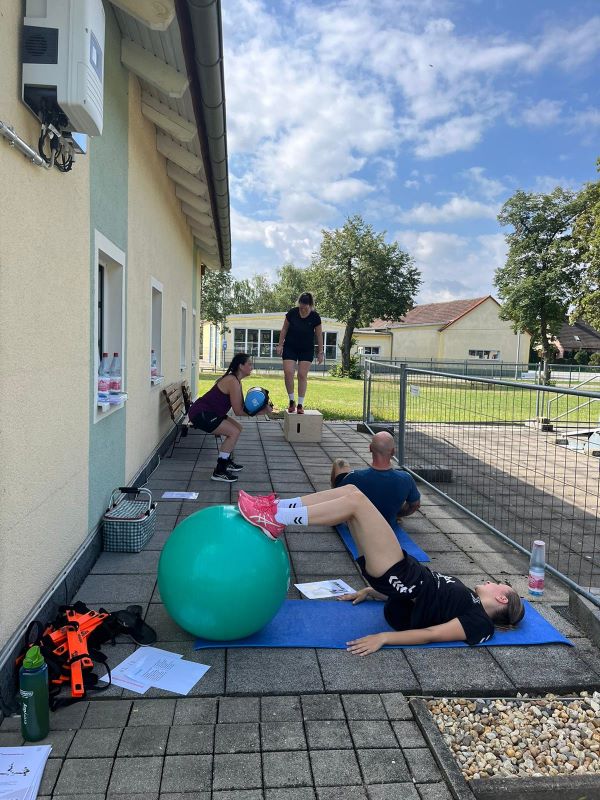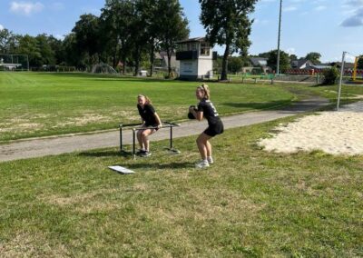 Der Samstag begann früh mit einem umfangreichen Workout auf dem Sportplatz, das von Sven geleitet wurde. Sven, der in seiner Freizeit sportliche Kurse anbietet, stellte ein anspruchsvolles Programm zusammen, das sich auf Kraft und Koordination konzentrierte – essenzielle Bausteine für die kommende Saison. Nach einer kurzen Mittagspause setzten sich die Spielerinnen auf ihre Fahrräder und unternahmen eine gemeinsame Tour zum Dreiweiberner See. Dort wurde nicht nur die malerische Umgebung genossen, sondern auch eine Runde Volleyball gespielt, was das sportliche Programm des Tages auf eine entspannte Art abrundete.